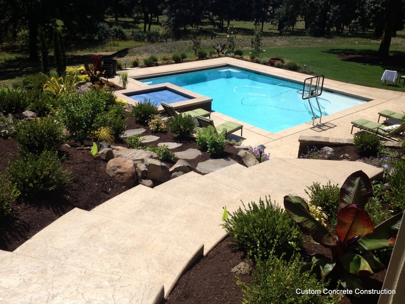 Custom Concrete Construction pool decks provide a slip-resistant surface that artfully blends with the landscape and architecture of your home. This can yield gorgeous results in furnishing a safe and attractive addition to any pool area.